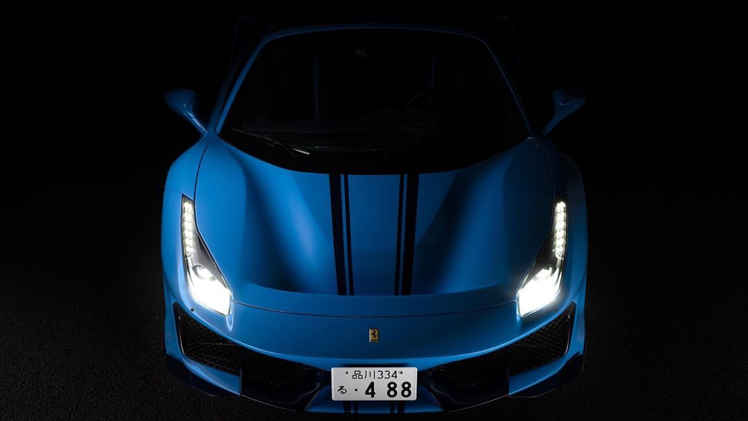 見る限りあらゆるところにブルーを採用したワンオフ仕様の488ピスタ
