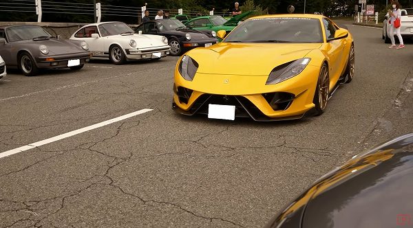 ”西の大黒PA”こと芦有ドライブウェイに集まったスーパーカー達。最大勢力の空冷ポルシェ多数、ランボルギーニや日産GT-R Nismo…そして5億円以上の価値を持つフェラーリも登場【動画有】