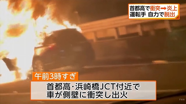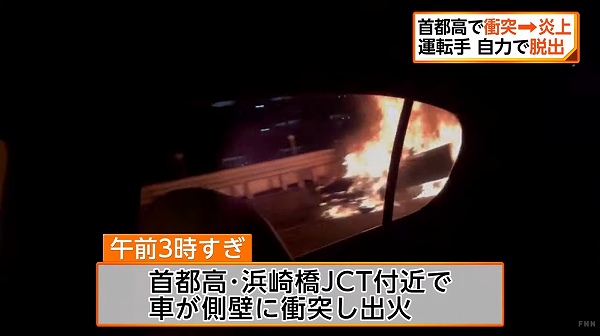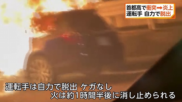 出火元はエンジンからであることもわかりますが、これだけの炎上事故でありながらもドライバーは無傷で無事脱出したとのことですから、まずは最悪の事態を免れることができて本当に良かったところ。
