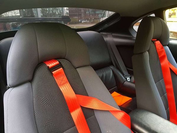 シートベルトはオレンジでハーネス式というのもユニーク。