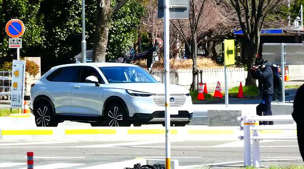 こちらが今回、愛知県名古屋市中区三の丸二丁目地内の環状交差点にてスパイショットされた新型ヴェゼルのデモカー。