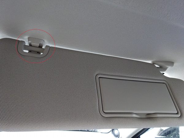 続いて新型ヴェゼルの気になるポイントとして、サンバイザーに有料パーキングチケットなどを差し込むための受け口がちょっと微妙で差し込みにくいということ(厳密には上の赤丸のように設けられている)。