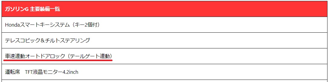 なお一部のサイト(YouTube)では、新型ヴェゼルのエントリーグレード・ガソリンGから「車速連動オートドアロック」機能が標準装備と記載されているところもありますが、その情報は誤りなので注意。