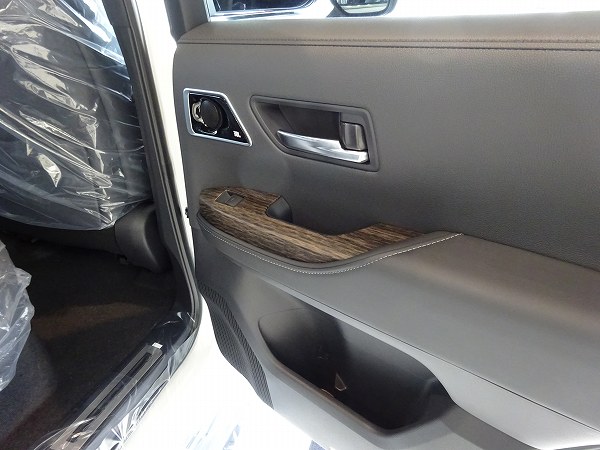後席用の内ドアはこんな感じで、フロント内ドアとは異なり、ウッド調オーナメントパネルにパワーウィンドウレバーが装備されていて中々にオシャレですね。