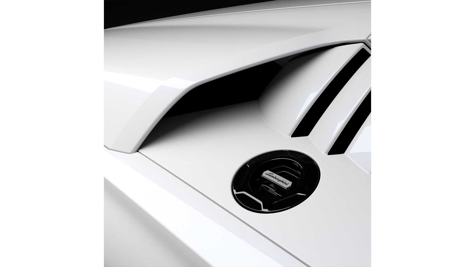 これは過去に、ランボルギーニオーナーの公式アプリにて配信された画像がリークされたもので、ブラックのフューエルリッドとその周りにカウンタックオリジナル独自のスクエア型エアインテーク。