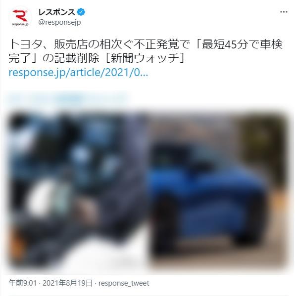 トヨタ、販売店の相次ぐ不正発覚で「最短45分で車検完了」の記載削除[新聞ウォッチ]https://t.co/6dgx9saMg9#トヨタ #新聞ウォッチ pic.twitter.com/BwIygh5utx