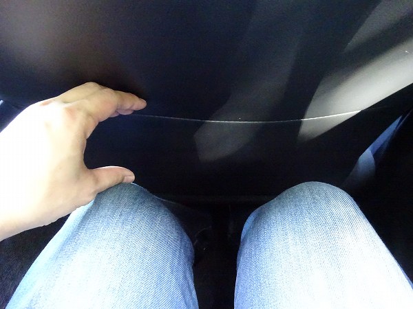 シートバックと膝先はこんな感じで、コブシ1個分あるぐらいでしょうか。