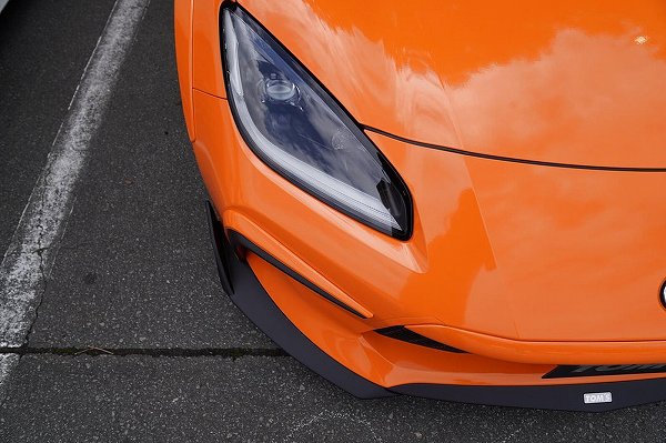 フロント周りを見ていくと、ブラック塗装に仕上げられたフロントリップやサイドウィングレット、サイドスカートを装着。