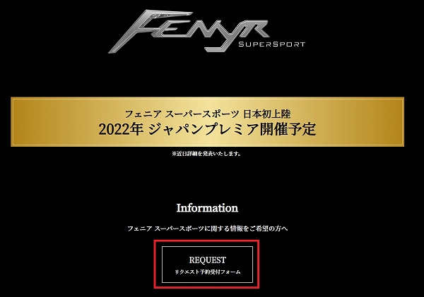 「フェニア スーパースポーツ ジャパンプレミアに参加してみたいですか?」というアンケート項目があり、「是非参加したい」「参加したい」「どちらともいえない」「あまり興味が無い」という項目がありますが、先ほどのアンケートの記載内容によっては、もしかするとフェニアスーパースポーツのジャパンプレミアに参加できるかもしれないため、本モデルに興味のある方は応募してみるのも有りかもしれませんね(気になる方はリクエストフォームはコチラ)。