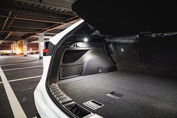 そしてこのラゲッジルームに設けられたラゲッジランプですが、ただ単純にLEDが搭載されるのではなく、上から斜め下側に向かって光を広範囲に照らすことで、ラゲッジフロア全体にまんべんなく光がいきわたるようになっているんですね。