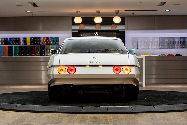 フロントやサイドはマツダ・サバンナRX-7の要素を与えながらも、リヤデザインは丸形2灯式のテールランプにすることで、一目でフェラーリとわかるようにしたところはフェラーリの譲れないプライドだと思いますが、リヤエンドから見るデザインは今までに見たことが無い程に独特。