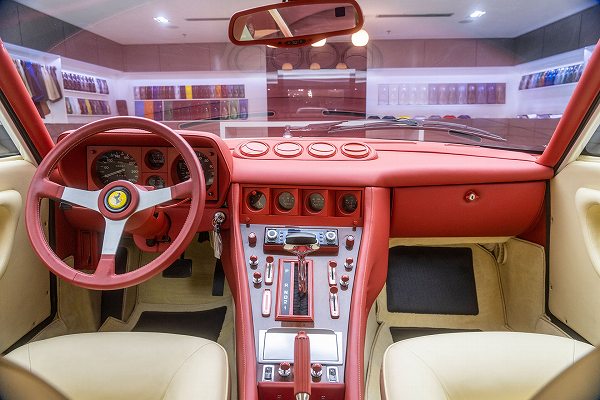 何とも明るめなカラーリングで、1970年代~1980年代のフェラーリはではちょっとイメージの付きにくいピンクレッド×ベージュのコンビカラーに仕上げられています(フェラーリといえばピンのペイントカラーは絶対に採用しないと断言していて、パリス・ヒルトンさんの依頼も断るほど)。