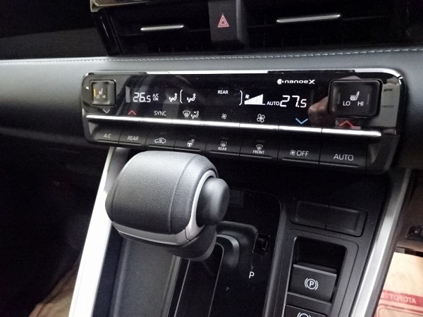 センターシフト周りを見ていくと、アドバンスドパークとパノラミックビューモニター(PVM)のスイッチが確認できないため、そうなると「予防安全装備のセットオプション」(237,600円税込)は設定されていないと考えられます。