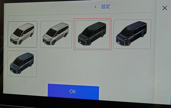 すると、全5色の新型ヴォクシーのアイコンが表示されます(新型ノアはレッド系も設定されているかも?)。
