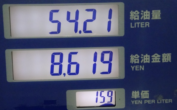 給油量は54.21Lと、カタログ表記の燃料タンク52Lに対して2.21Lもオーバーしていますね。