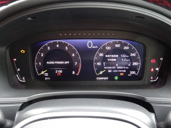 コンフォート設定での納車だったため、10.25インチ液晶メーターのレイアウトは新型ステップワゴン(New STEPWGN)やシビック(FL1)などと同じですが、最高速度が180km/Lではなく320km/L上限、上部にあるシフトインジケーターはタイプRのみ。