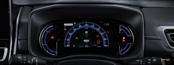 エントリーグレードだと4.2インチの縦長TFTマルチカラー+アナログメーターのハイブリッドですが、上位グレードだと7インチ+アナログメーターのハイブリッドにアップデートされる模様。