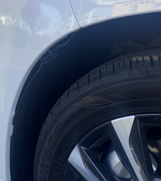 納車されて僅か2か月ほど経過してからのこと、上の画像にもある通り、ヴォクシーの足元をみていたら違和感を感じ、よく見てみるとタイヤハウスカバーが外れかけていたとのこと。