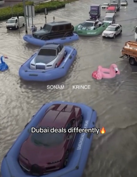 ドバイの記録的な大雨被害は想像以上にヤバかった…フェラーリやランボルギーニなどの大量のスーパーカーが水害に→なかにはゴムボートなどで回避?