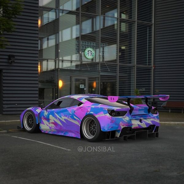 このレンダリング画像は、デジタルアーティストのJonsibal氏が作製したもので、デザインコンセプトとしては、「お洒落な休日を過ごすレーシングカー」ということで、デザインアーティストが手掛けたようなカラフルな色合いとスターバックスとのコラボを実現。