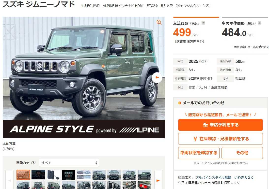 スズキは転売対策に失敗したようだな…新型ジムニーノマドがGW前に中古車サイト・カーセンサーにて一挙「11台」も出品!過去最高額となる「499万円」の個体も