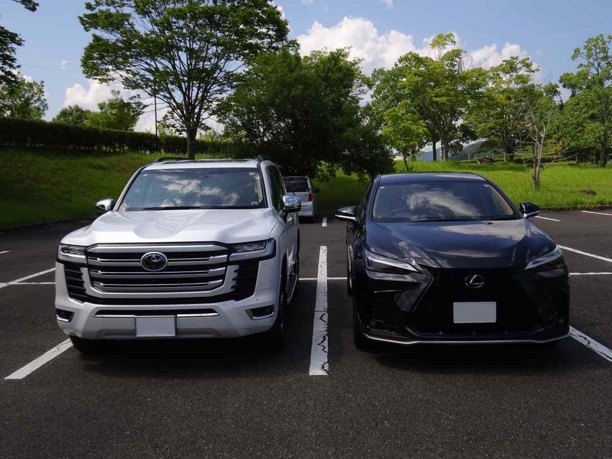 お盆休みに知人のレクサスNX350h F SPORTとトヨタ・ランドクルーザー300を並べてみた。知人が比較試乗して全く性格の違う乗り味に驚愕