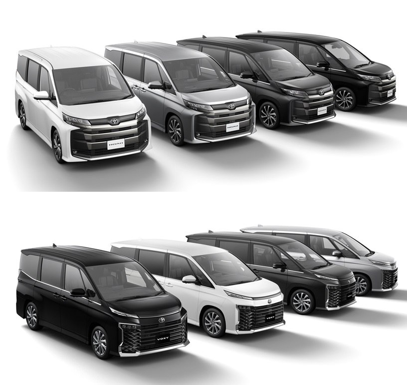 こちらが今回、一部改良版として発表されたノア/ヴォクシーのボディカラー全色。