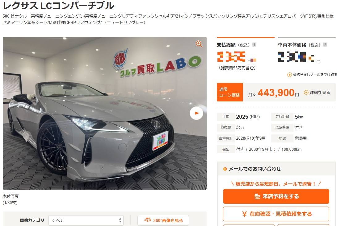 まさかこんなにも早くLC500コンバーチブル・ピナクルがカーセンサーに出品されるとは…