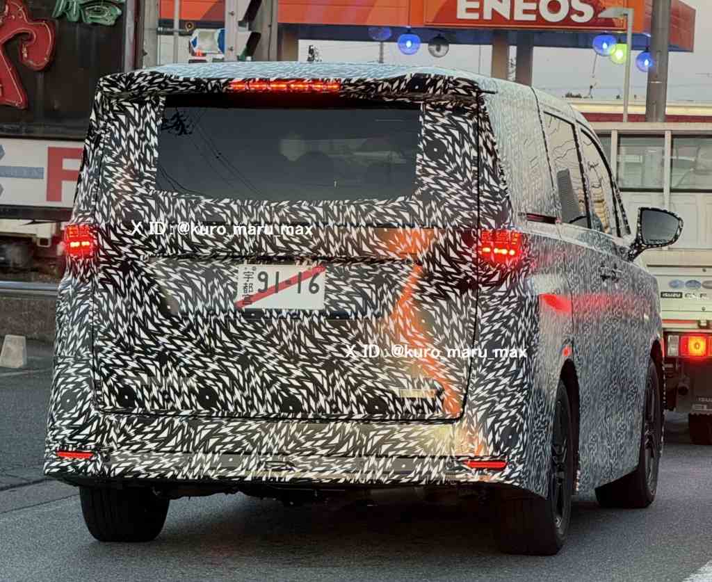 これまでで最も鮮明な後ろ姿ともいえる新型エルグランド (E53)のテストカー