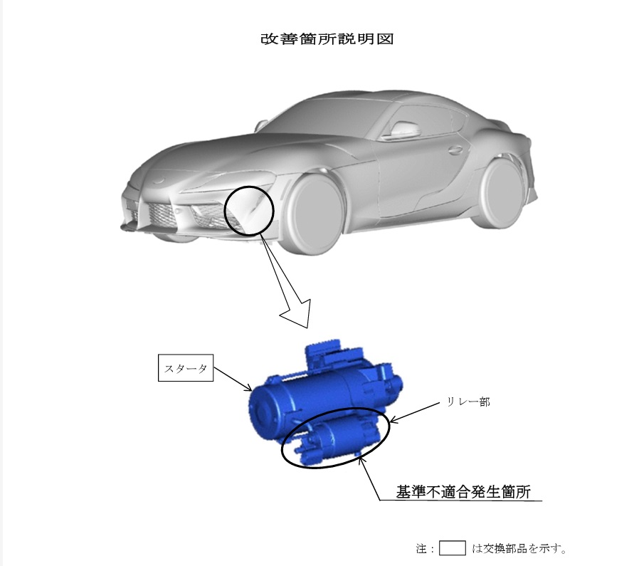 改善措置としては、全車両、スターターを対策品に交換するリコール作業を実施するとのことです。
