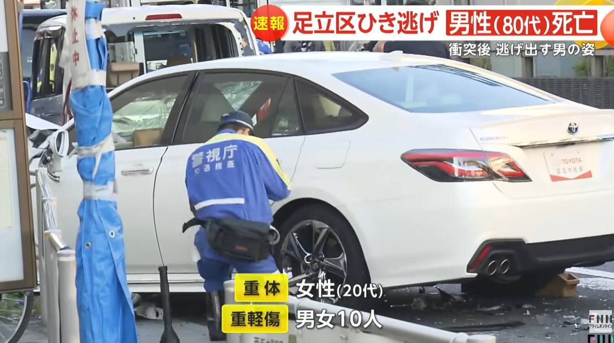 これは三連休の最終日となる2025年11月24日の午後0時半ごろに発生したもので、東京都足立区の国道4号線沿いにて、トヨタ先代クラウンRS (Toyota Crown RS)と思わしき盗難車両が、車両だけでなく歩行者らをはね、ケガをした12人のうち、1人の80代男性が死亡したことが明らかとなりました。