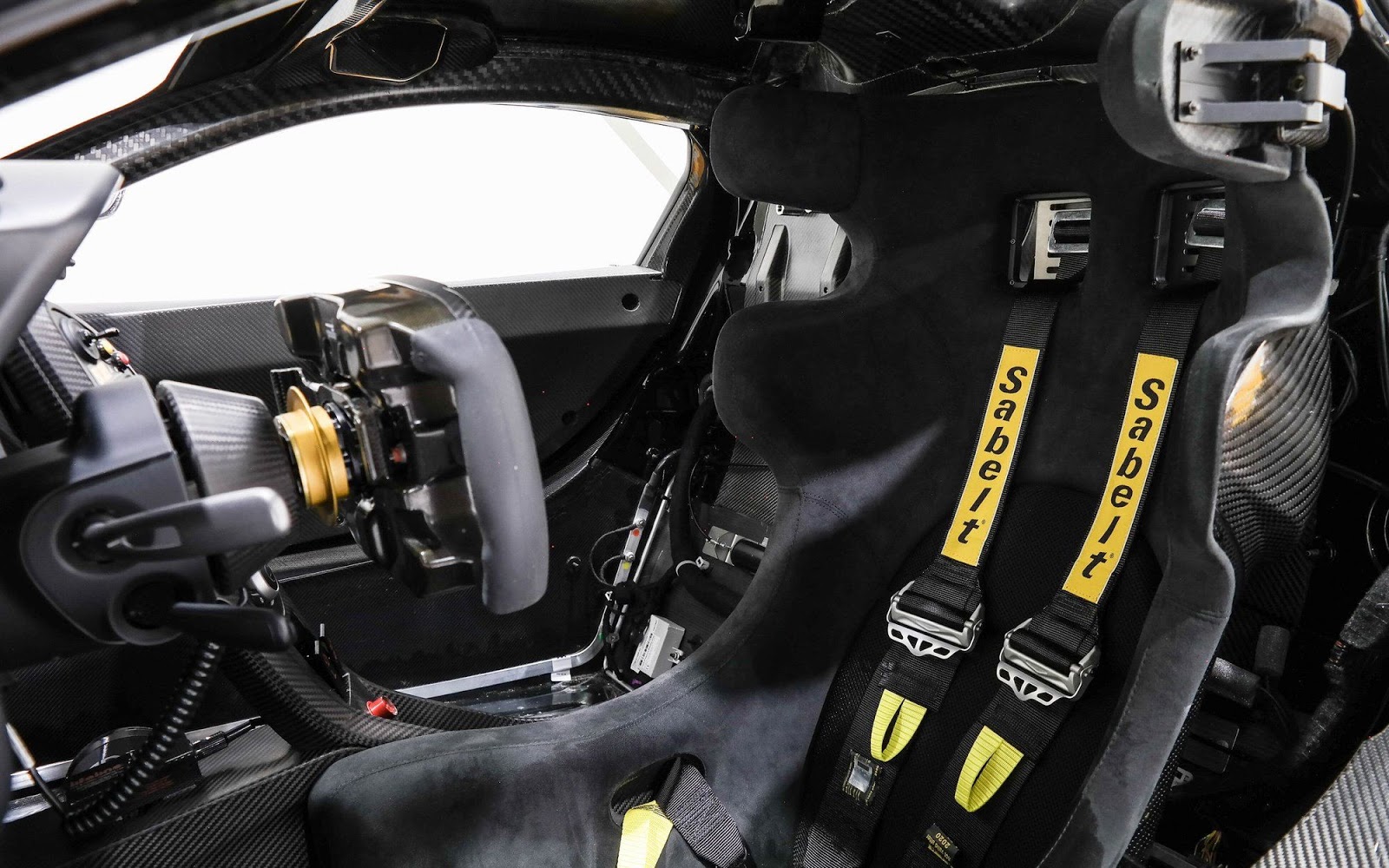 内装はお察しの通り、ドライバーズシートのみ設計されたワンシータで、フルアルカンターラシートにありとあらゆる個所にはカーボンファイバを使用。