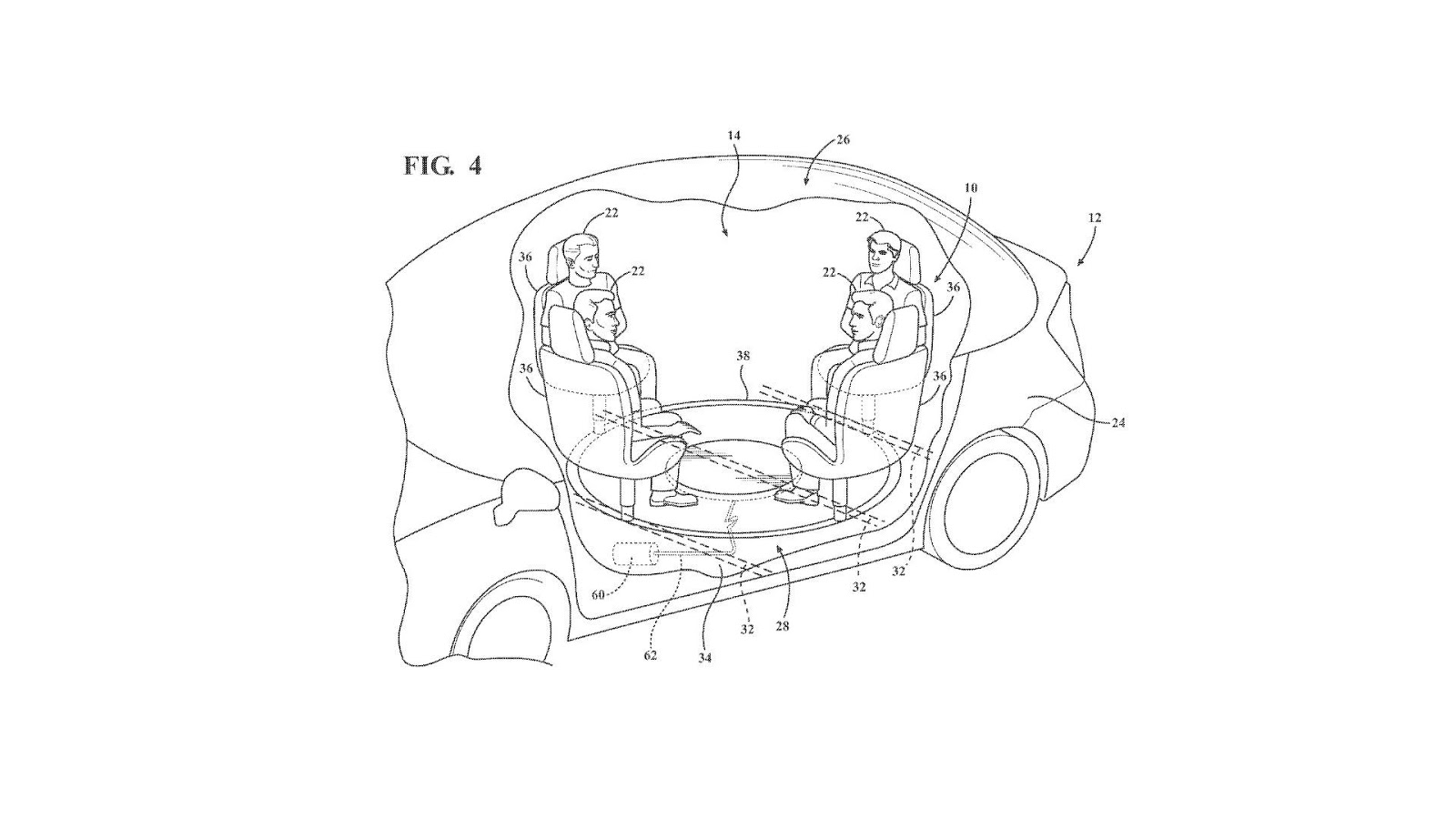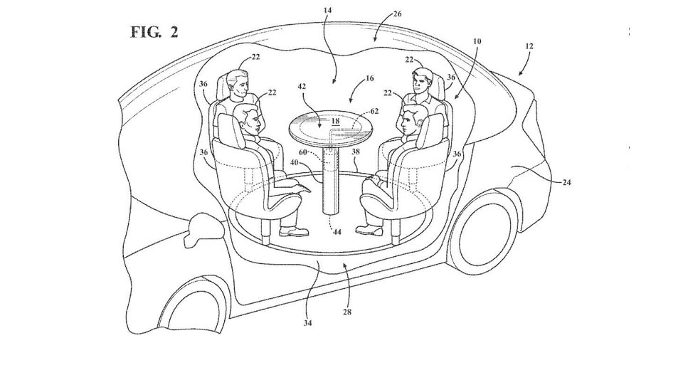 しかも、この技術特許の面白いところは、もし自律走行している自動車が何かしらの衝突事故に見舞われた場合、テーブルにはエアバッグが内蔵されていて、車内の人間をしっかり守れるような造りになっているとのこと(下の図がイメージしやすい)。