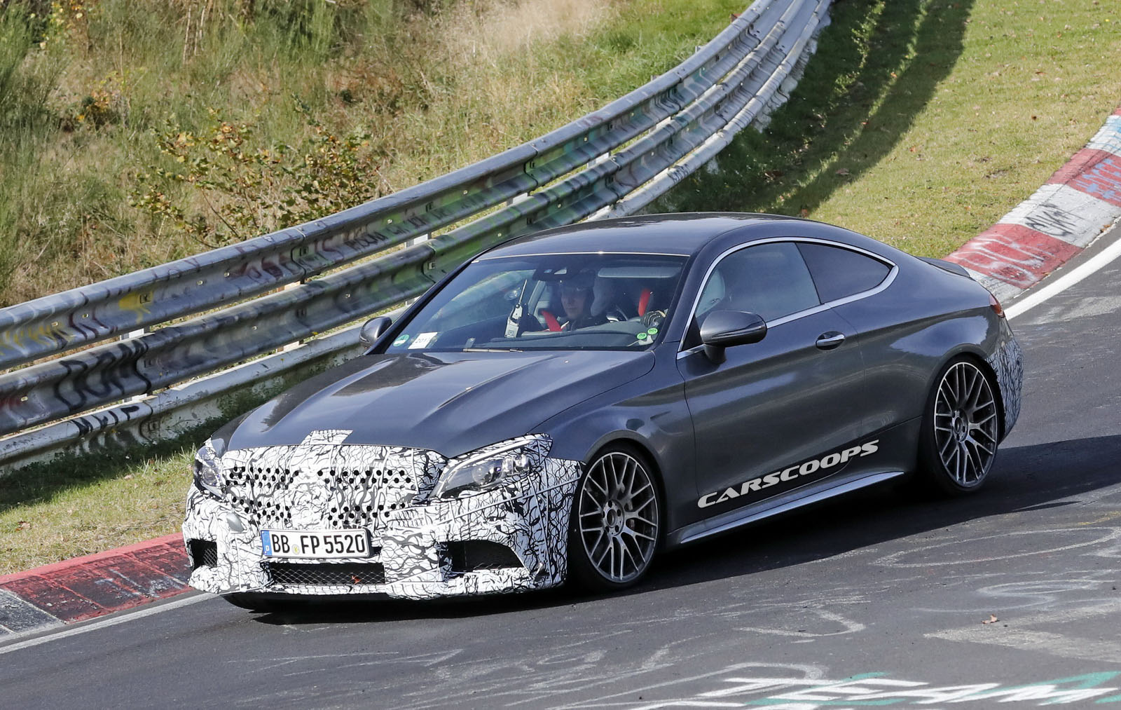 メルセデスベンツAMG「C63クーペ」フェイスリフト版と思わしき開発車両が、ドイツ・ニュルブルクリンクサーキットにてテスト走行しているところを捕捉。