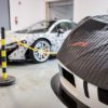 ルーフトップからリヤエンドにかけての大型シャークフィンやリヤディフューザー、リヤホイールアーチモールは「ウラカン・ペルフォルマンテ」にも採用のカーボンコンポジットを採用。