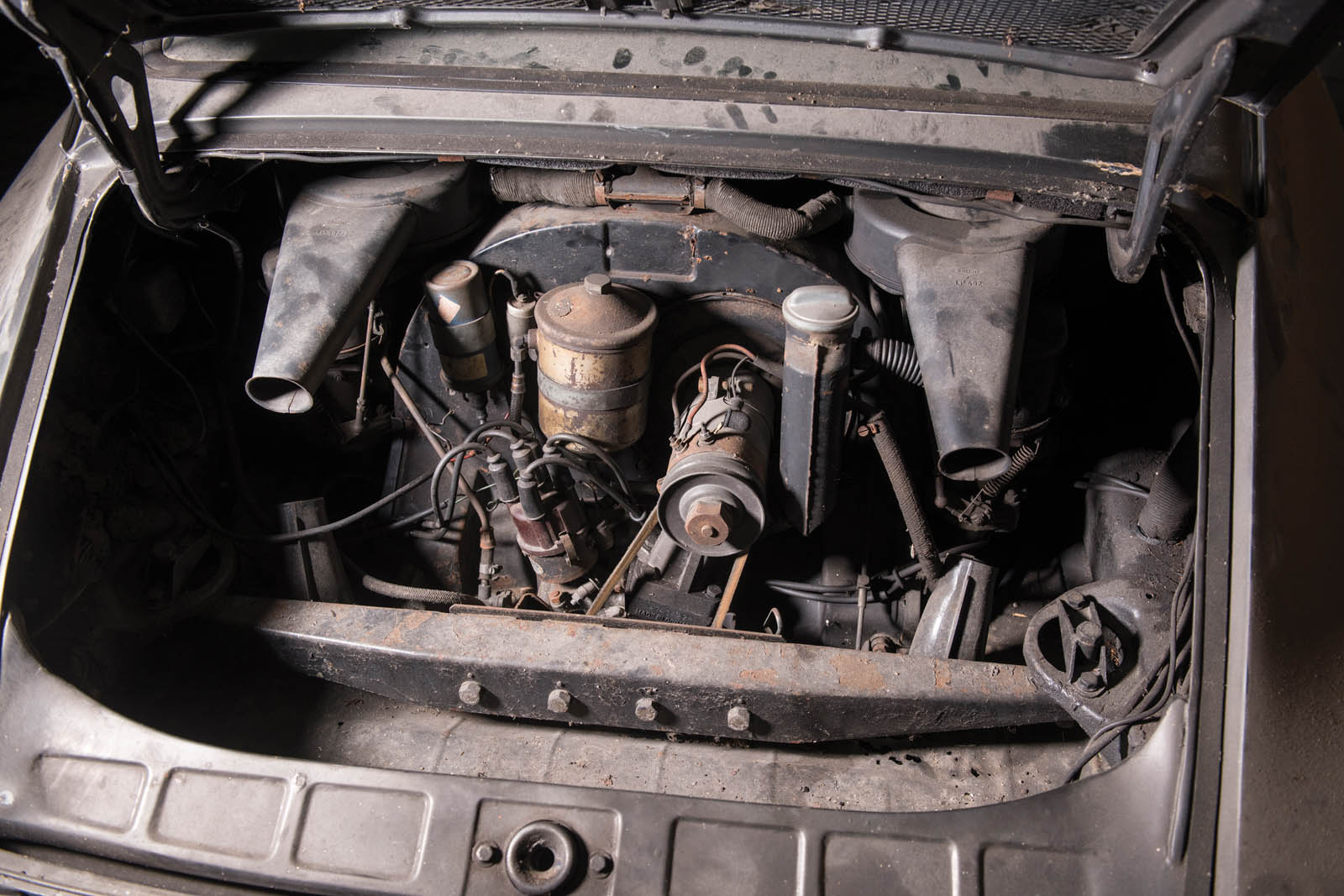 この個体は、1965年4月に発売されたリヤエンジンレイアウトのスポーツモデルで、基本的な構成は「911」をベースとするも、内装の簡略化とパワートレインが排気量1.6L 水平対向4気筒OHVエンジンを搭載した「356」の最終型SC用空冷エンジンを搭載。最高出力は90hp、最大トルク122Nmを発揮し、トランスミッションは4速MTを標準としますが、オプションにて5速も設定可能としていました。