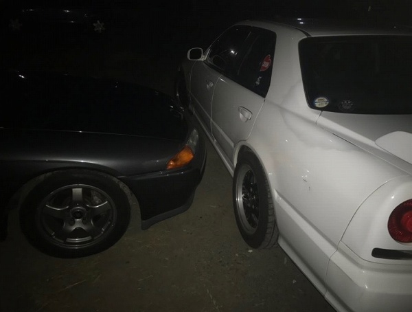 「スカイラインGT-R R34」のオーナーは、盗難対策も兼ねて、以下のように目の前に「ER34」にてブロックしていたとのことですが、これでも盗難の被害を受けていることから、犯人は何が何でも「R32」を入手しようとしていたのでしょうね。