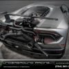 特にダークレッドにて着色されたカーボンファイバパーツは、フロントスプリッターやサイドスカート、サイドエアインテーク、リヤフェイス、リヤディフューザー、サイドミラーに採用(これだけでも相当なオプション費用だと思う)。