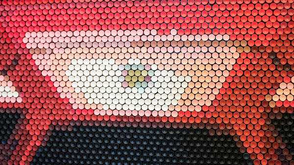 壁画に差し込まれた様々な配色のティーが存在しますが、ピンポイントでチェックするだけでも約10色以上使用されていることが確認できます。
