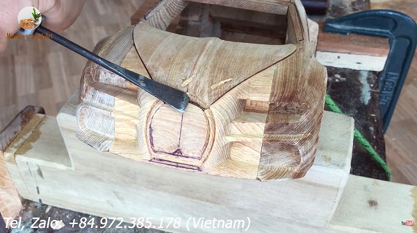 その後、糸鋸盤やグラインダ、特殊工具などを使いながら木をくり抜いたりと形を整えていきます。
