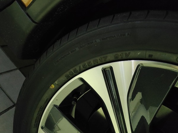 そして最も気になっていた17インチアルミホイールに装着されるタイヤですが、フロント・リヤ共通で205/55R17 91Vなんですね。
