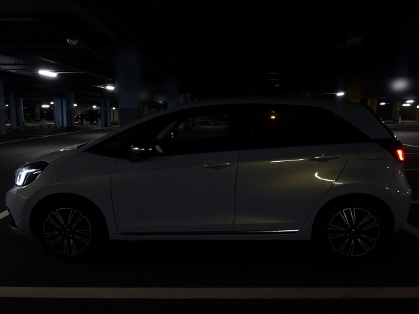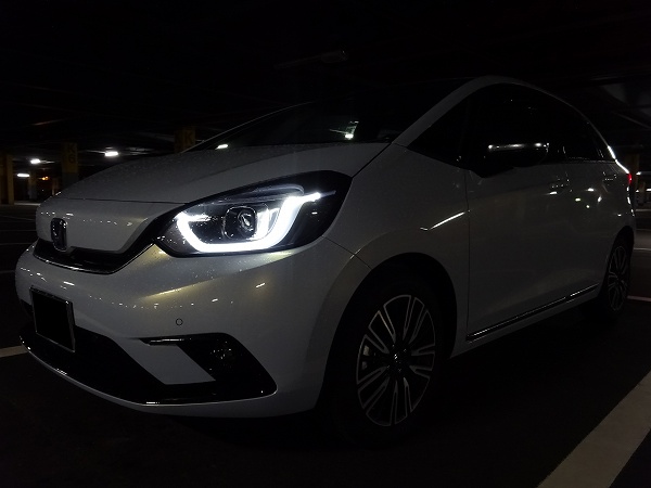 普段は可愛らしい顔つきの新型フィット4ですが、こういった夜間時の撮影では色んな意味で盛ることができ、キュートさよりもカッコよさが際立ちますね(しかも質感も高い)。