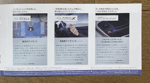 こちらがスバルの安全装備となる「新世代アイサイト」「新世代アイサイトX(エックス)」「コネクティッドサービス(SUBARU STARLINK)」。