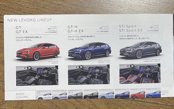 そしてここからがまだどこも公開していないであろう新型レヴォーグのグレード構成とボディカラー一覧。