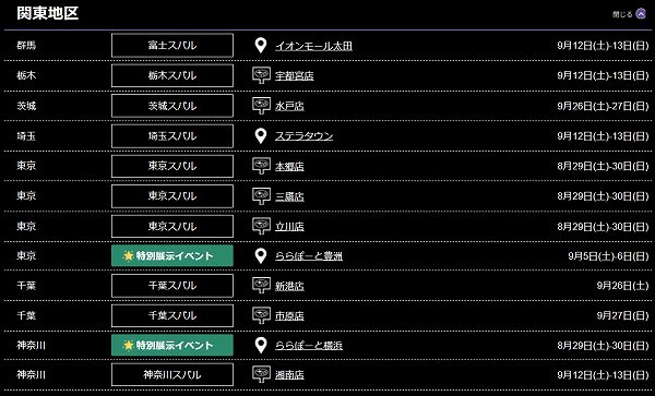 ・東京スバル・立川店:8月29日(土)~30日(日)